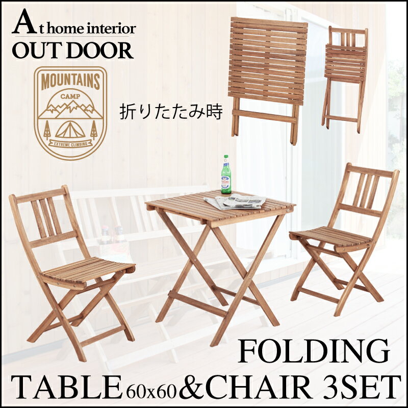 【アウトドア キャンプ BBQ】折りたたみテーブル 折りたたみチェア 3点セット ガーデンテーブルセット フォールディングテーブル 机 テーブル ガーデン リゾート 木製 簡易 アカシア アウトドア バーベキュー おしゃれ ベランダ キャンプ ソロキャン