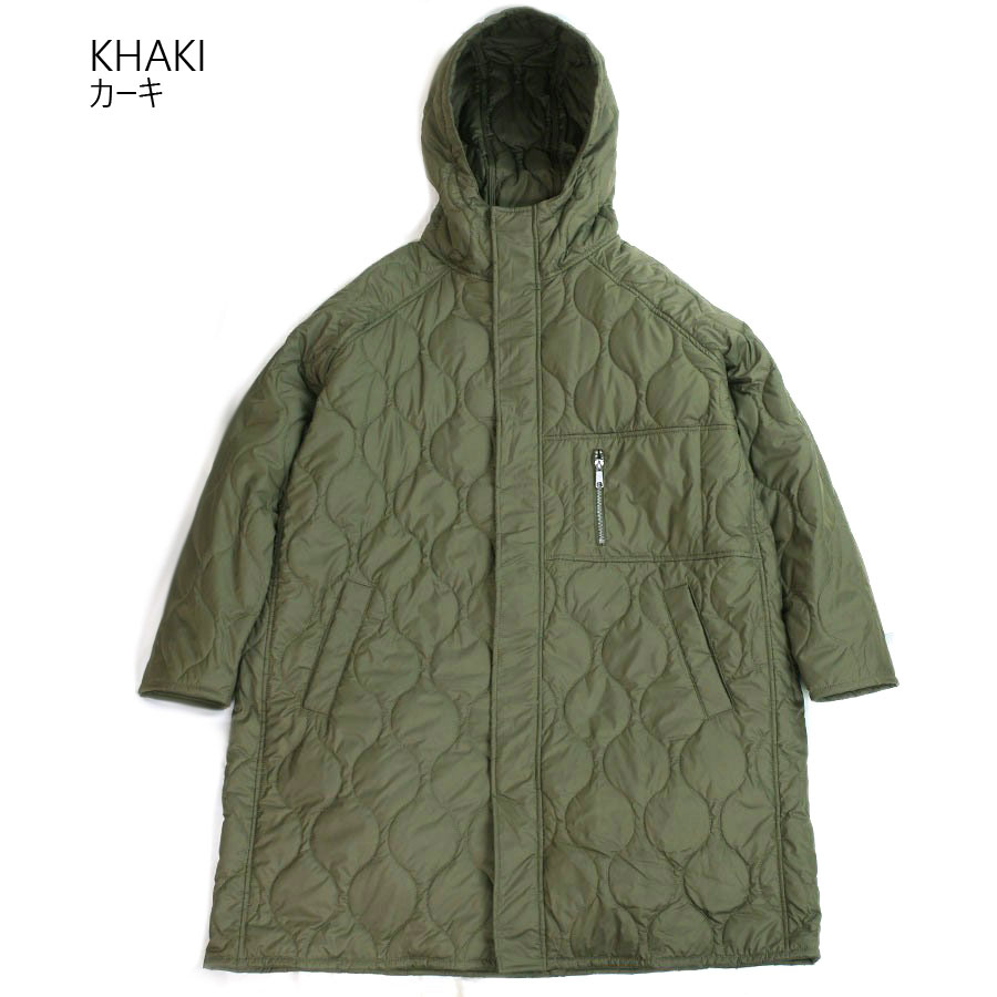 メンズ キルティング コートQUILTING OVER COAT キルティングオーバーコートLAUNCH BASIC TRADEラウンチベーシックトレードKHAKI(カーキ) BLACK(ブラック)ナイロン メンズ 男女兼用 オリーブ 黒 ビッグシルエット