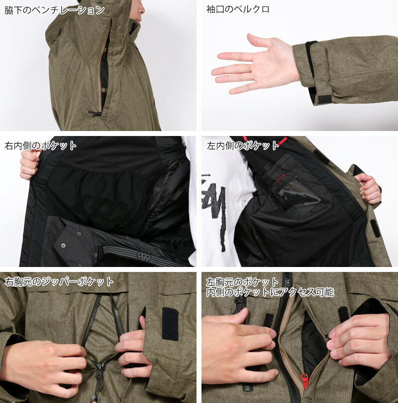 商品説明 Classic outdoor styling curated for your contemporary winter weather needs and priced just right.(※今シーズンメーカーカタログより抜粋) 商品詳細 商品名 : アンセム インシュレイティッド ジャケット / ANTHEM INSULATED JACKET ブランド : 686 / SIX EIGHT SIX 品番 :L9W125 種別 : ウェア ウエア ジャケット スノボ スノーボード メンズ 商品説明 : ・infiDRY10K Fabric+DWR ・Fully Taped Bemis Seams ・80g Bosy /60g Sleeves/40g Hood Polyfill Insulation ・Air-Flo Underarm Vents ・Attached Adjustable Powder Skirt ・Pant jacket Connect System ・Adjustable Death Grip Velcro Cuffs ・Inner Thumb Grip ・Outer Collar Venting ・One-Cinch Hood Adjustment ・Full velcro Closure SleevePass Pocket ・Internal Mesh Goggle/Storage Pocket ・Dual Access Media Audio Pocket with Audio Cord Outlet ・Tangle Free Headphone Loops ・NEW Hood Link System ・Helmet Compatible 【必ずご確認ください】 ※転売目的と判断した場合は、ご注文をキャンセルさせて頂く場合がございます。